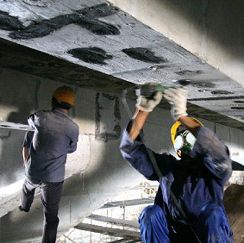 4、 將修補區(qū)域內(nèi)混凝土基層表面浮塵、油污清理干凈,并剔除疏松部分。